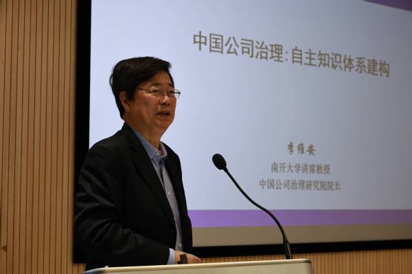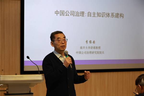 南开大学讲席教授、博士生导师、中国公司治理研究院院长李维安教授作《中国公司治理:自主知识体系建构》学术报告,提出了中国公司治理自主体系建设的路径,包括国际化背景下的本土化、绿色治理、应急治理研究等热点研究课题。