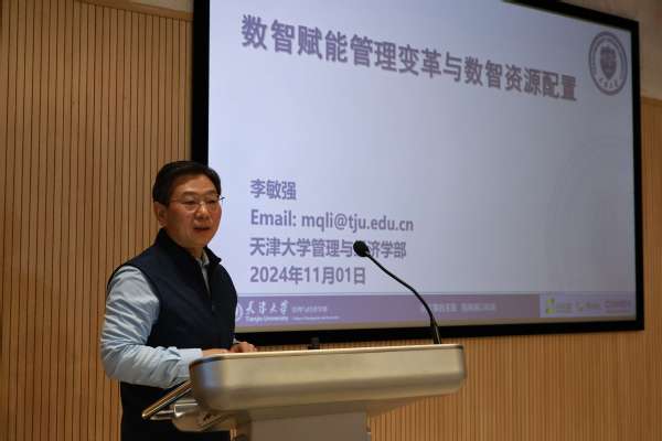 天津大学管理与经济学部、博士生导师李敏强教授作《数智赋能管理变革与数智资源配置》学术报告,阐述了数智技术在企业管理层面的应用,以及管理决策变革、战略与组织变革、消费者行为及产业发展、企业管理变革等内容。
