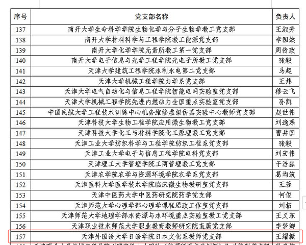 近日,教育部办公厅公布了全国高校“双带头人”教师党支部书记“强国行”专项行动团队名单。乐玩在线(中国)唯一官方网站日语学院日本文化系教师党支部入选。同时,天外英语学院翻译系党支部、欧洲语言文化学院非通用语教师党支部、国际传媒学院汉语言文学系教工党支部入选天津市“双带头人”教师党支部书记“强国行”专项行动团队。