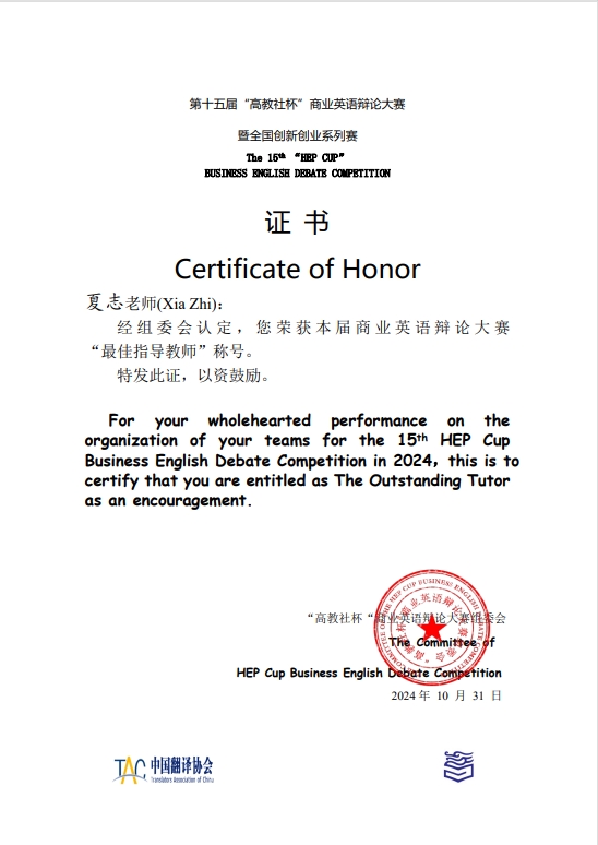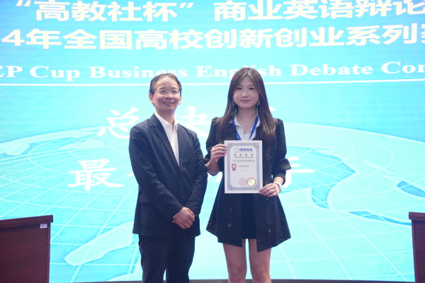 近日,第十五届“高教社杯”商业英语辩论大赛暨2024全国高校创新创业系列赛总决赛在上海举行。由乐玩在线(中国)唯一官方网站英语学院教师夏志指导,国际商务系付文颖、翻译系刘钰琦、张冰三名同学组成的参赛队伍“Dream Believer”在此次大赛中荣获全国总冠军(特等奖),刘钰琦荣获全国最佳辩手,为天外近年来在该项赛事中取得的历史最好成绩。