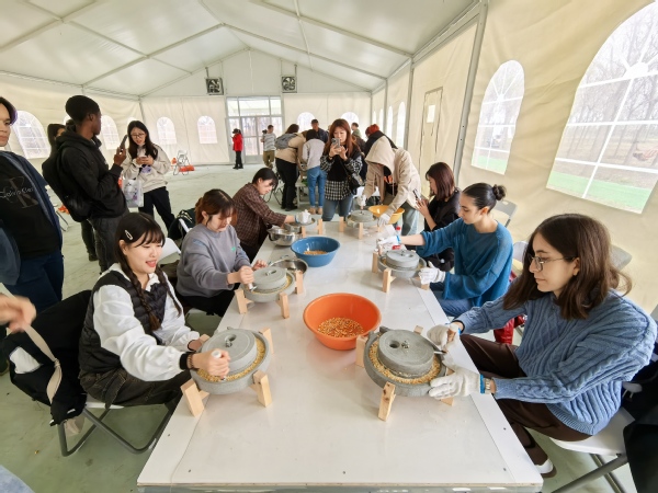 参观果园、品尝水果、玉米脱粒、现磨豆浆等活动,让留学生们感受到了人与自然的和谐共生、朴实节俭的传统农家生活,以及绿色农业、循环永续的耕作理念。