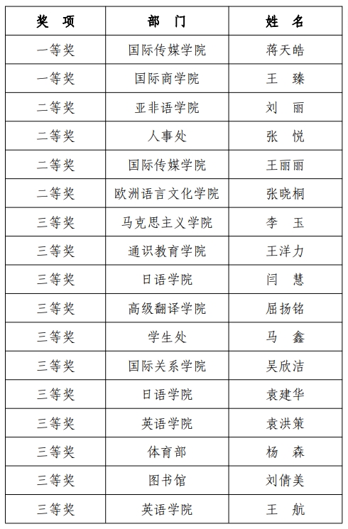 经过激烈角逐,蒋天皓、王臻2人荣获一等奖;刘丽等4人荣获二等奖;李玉等11人荣获三等奖。