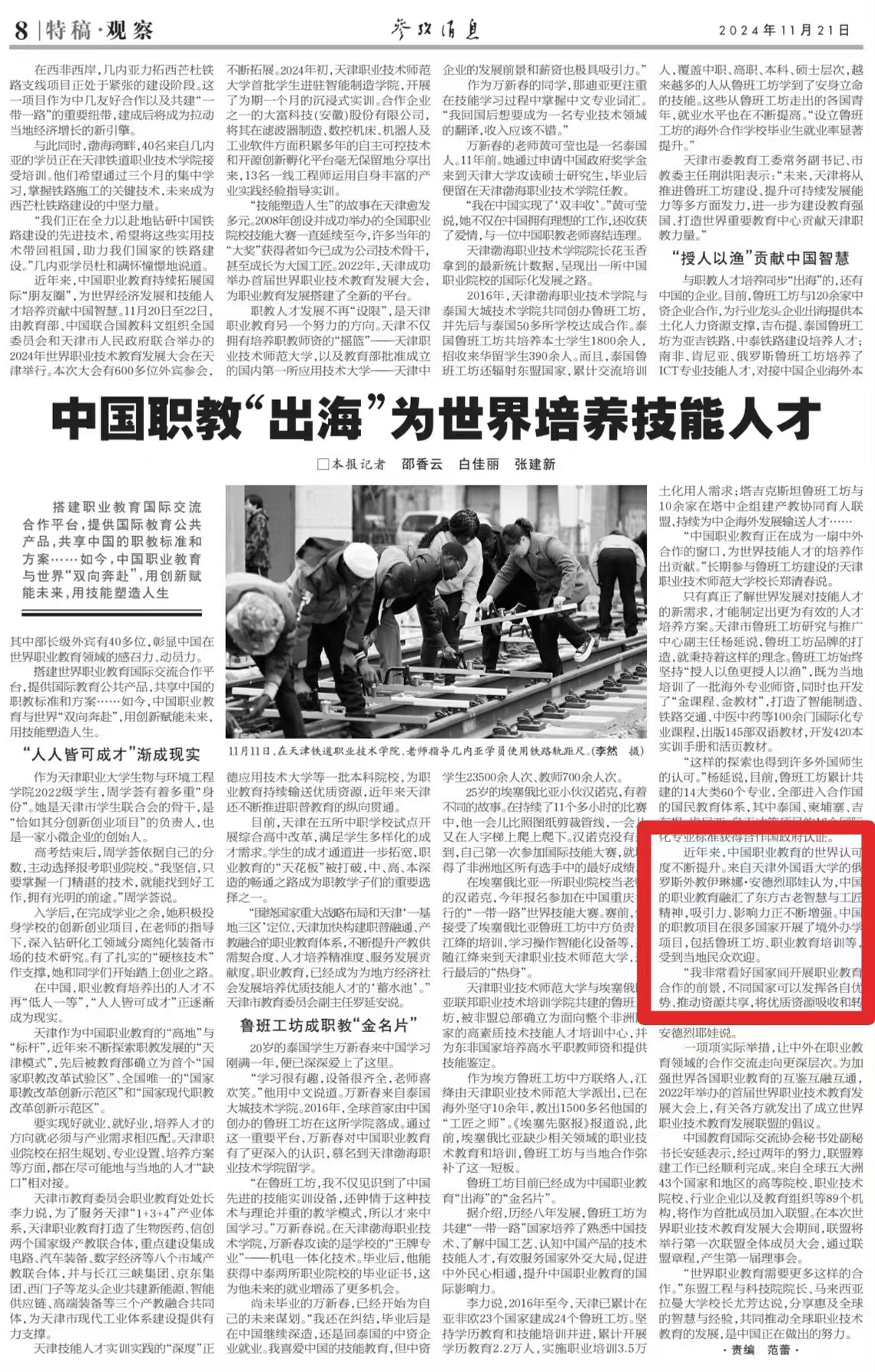 我校俄语外教接受参考消息采访:近年来,中国职业教育的世界认可度不断提升。来自乐玩在线(中国)唯一官方网站的俄罗斯外教伊琳娜·安德烈耶娃认为,中国的职业教育融汇了东方古老智慧与工匠精神,吸引力、影响力正不断增强。中国人的职教项目在很多国家开展了境外办学并项目,包括鲁班工坊、职业教育培训等,受到当地民众欢迎。