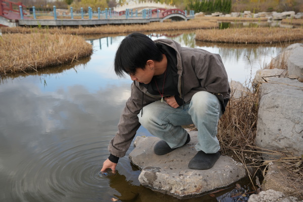精彩的互动环节吸引了师生们的广泛参与,他们有的在湿地湖边采集水样,有的收集芦苇研究净水原理,有的挖掘土壤了解土质,有的驻足拍摄候鸟栖息觅食的有趣场景,有的尝试辨识身边各类植物,大家在“沉浸式”的思政课教学中真切感悟美丽中国建设的天津生动实践。在公园的科普中心,声光电融合的世界让这堂“绿色”思政课瞬间变得更加生动有趣。