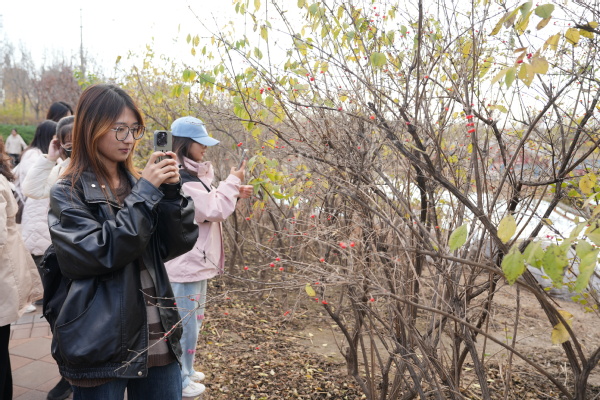 走进临港公园,“水荡沽田”“蜿蜒蒲香”“芦荡飞雪”“长田鹭飞”等八大特色景观一一在师生面前精彩呈现。听着来自天津市生态环境科学研究院刘红磊博士的专业讲解,师生们一路走、一路看、一路实践。