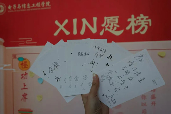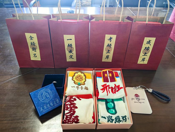 此外,电子与信息工程学院考前为考生们送上了“好运大礼包”,里面装满了真挚的关心与祝福:暖贴——驱散寒意、清凉油——提神醒脑、上岸袜——步步登高、状元笔——妙笔生花、向日葵——一举夺魁、橙子——成功上岸……