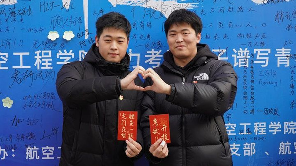 中国民航大学在校园里设立清晰的指引标识,科学规划研考路线,工作人员实时在岗,用心护航研考。为方便考生中午用餐和休息,学校向校外考生开放食堂,并设置考生休息区域;安排医生值班、准备常用退烧药物,为考生提供医疗保障。