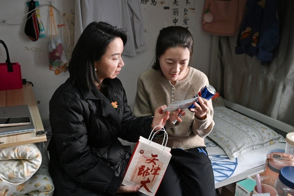 考研前夕,天津师大在图书馆举行了一场暖心快闪活动,通过弦乐合奏《天空之城》、舞蹈《吉祥欢歌》、歌曲《不要慌,太阳下山有月光》和《夜空中最亮的星》等丰富多彩的惊喜活动为考生加油打气送祝福。学校精心准备了橙子、薯愿薯片、定制可乐等暖心大礼包,并在图书馆为考研学生赠送书签和祝福贺卡。各学部(院)深入走访考研学生宿舍,帮助考生舒缓备考压力、提振考研决心。