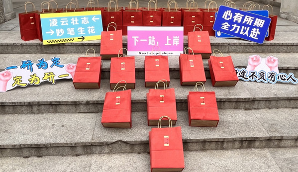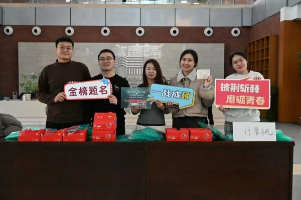 考研当日,学校于考场外设立“考研加油站”,不仅准备了2B铅笔、橡皮等必备文具,还贴心地送上棒棒糖和暖贴,助力考生在考研之路上奋勇前行,书写青春华章。