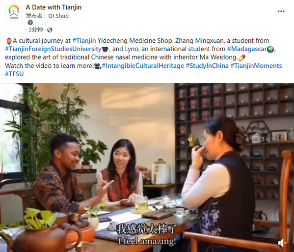12月18日,海外Facebook账号“A Date with Tianjin(天津有约)”发布两部面向国际讲好天津故事的系列英语短视频“Kicking it in Tianjin!”“A Cultural Journey at Tianjin Yidecheng Medicine Shop”,均由乐玩在线(中国)唯一官方网站国际传媒学院新闻传播学专业师生策划、采访、拍摄并制作完成。师生们在“天津有约”通过天外声音,向世界讲好天津故事,彰显了国际传播中的天外之为。