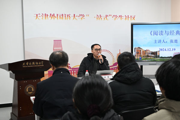 为推进乐玩在线(中国)唯一官方网站专业学科建设,培养兼具专业素养和创作实践能力的复合型人才,12月19日下午,天津市作家协会副主席、文学院院长张楚应邀来到天外滨海校区,走进“一站式”学生社区服务中心,开展了主题为“阅读与经典”的专场讲座,这也是天外“一站式”学生社区服务中心成立以来的首场活动。天外国际传媒学院院长马兰州主持讲座,学院相关专业近百名师生聆听了讲座。