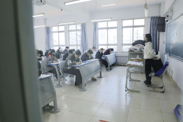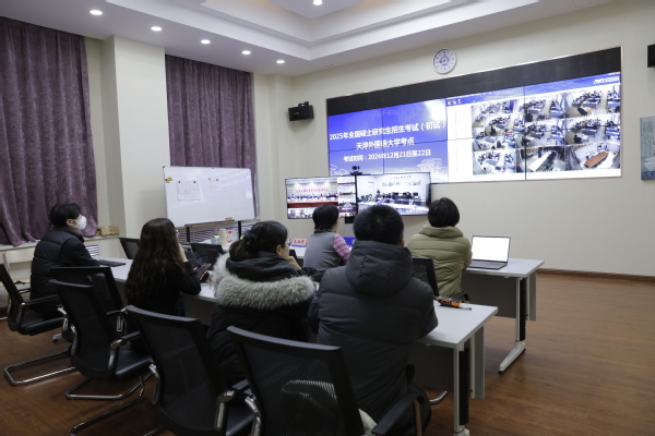 天外高度重视本次考试的各项工作,考试开始后,校党委书记周红蕾、校长李迎迎、副校长朱鹏霄及研究生院、校办公室负责人来到考试指挥中心,了解考点的各项情况,并带领工作人员,逐层巡考,对考场的情况进行监督与指导。