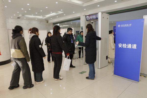 学校特别设置了3条安检通道,便于考生及时有序地通过安检,到达考场。