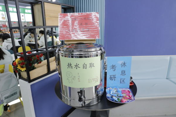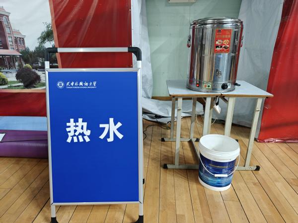 天外在体育馆的等候区也为考生设置了热水饮用区,对需要帮助的学生特别开辟了绿色教室,供有需求的考生用餐及休息,把温暖第一时间送到考生的身边。