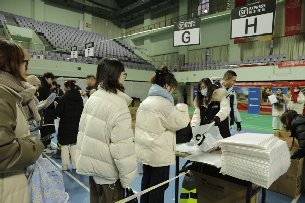 体育馆内,为考生开辟了12道存包处和19道取物处,并在体育馆上方,用字母ABCD等明确标出存包处的位置,便于考生查找,快速存取物品。