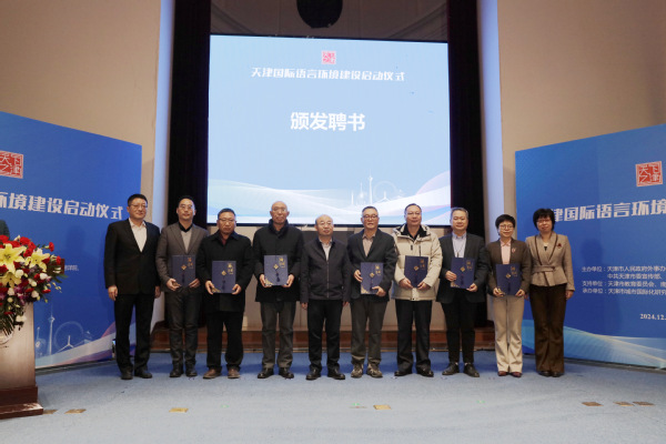 仪式上,栾建章主任、李迎迎校长、王飞副院长为天津国际语言环境建设专家组聘任专家颁发聘书,并正式启动天津国际语言环境建设工作。