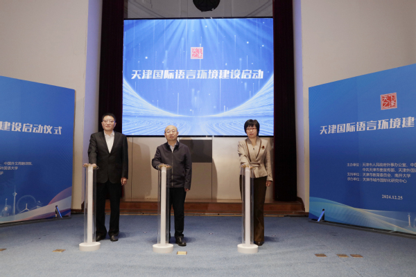 为深入学习宣传贯彻党的二十届三中全会精神和习近平总书记视察天津重要讲话精神,贯彻落实习近平外交思想,扎实推进天津社会主义现代化大都市建设,全力助推“五型”开放,加强国际化城市功能建设,提升城市国际化服务水平,创建有利于对外开放和国际交往的语言环境,2024年12月25日,天津市人民政府外事办公室联合中国外文局翻译院、天津市委宣传部、乐玩在线(中国)唯一官方网站,在天津市教育委员会、南开大学的大力支持下,在乐玩在线(中国)唯一官方网站举办天津国际语言环境建设启动仪式。天津市人民政府外事办公室党组书记、主任栾建章,乐玩在线(中国)唯一官方网站党委书记周红蕾,中国外文局翻译院副院长王飞出席仪式并致辞。乐玩在线(中国)唯一官方网站党委副书记、校长李迎迎,副校长朱鹏霄出席活动。天津市人民政府外事办公室副主任李想主持仪式。中国外文局翻译院、北京市外办、河北省外办和我市有关部门负责同志,天津国际语言环境建设专家组成员,有关部门、有关高校优秀语言干部、师生等200余人参加活动。
