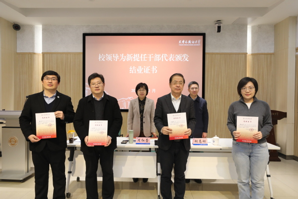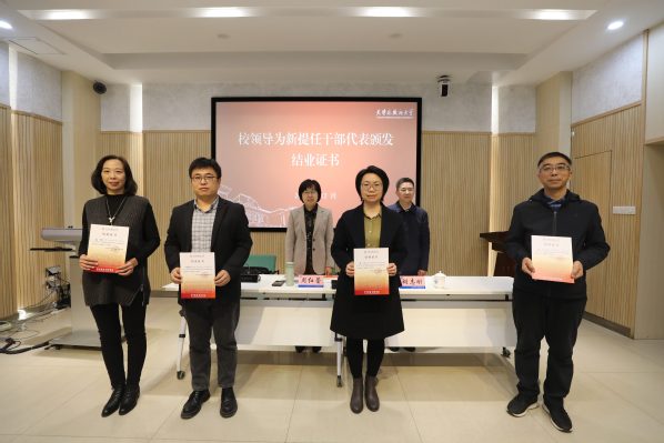 校党委书记周红蕾在讲话中指出,新提任干部要始终牢记习近平总书记的殷殷嘱托,擦亮忠诚、干净、担当的政治本色。一是要做对党忠诚的表率,要将对马克思主义的信仰,对中国特色社会主义的信念,对实现中华民族伟大复兴中国梦的信心内化于心。严格遵守政治纪律、政治规矩,提高理论修养,学会用习近平新时代中国特色社会主义思想武装头脑。二是树牢以人民为中心的政绩观,以师生满意为第一标准,不断提高服务师生的能力和质量;践行新时代好干部标准,着力增强“八项本领”,提升“七种能力”;努力做到站位高、肯吃苦、善学习,不断提高责任感和使命感。三是珍惜组织信任,守住干净底线,夯实清正廉洁思想根基,自觉净化“朋友圈”,守住“八小时以外”自律关。她希望各位干部要始终秉持“干实事、抓重点、打基础、利长远”的工作原则,在加快教育强国建设、主动服务国家对外传播、服务天津市高水平对外开放、推动学校建成特色鲜明的高水平外国语大学中积极贡献力量。