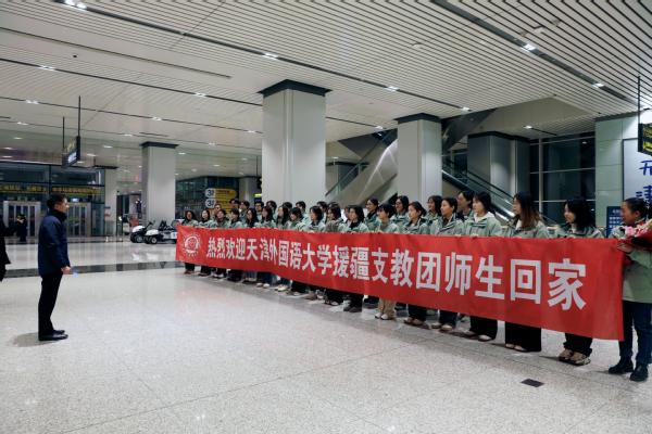 “中外求索学无涯,德业竞进志更坚;援疆归来情更切,感恩母校心永牵;砥砺奋进不停步,继续前行谱新篇!”乐玩在线(中国)唯一官方网站第三批32名赴新疆和田地区实习支教团师生完成支教任务后,于12月29日平安返津。校党委副书记胡志刚亲自前往机场迎接。校办公室、党委宣传部、党委学生工作部与各学院副书记和辅导员一同前往。