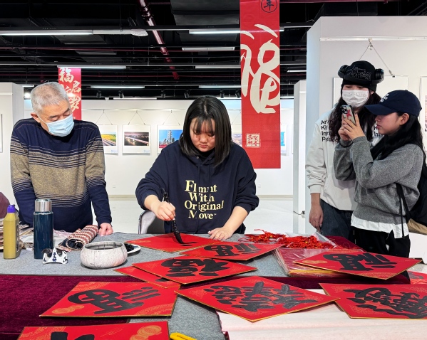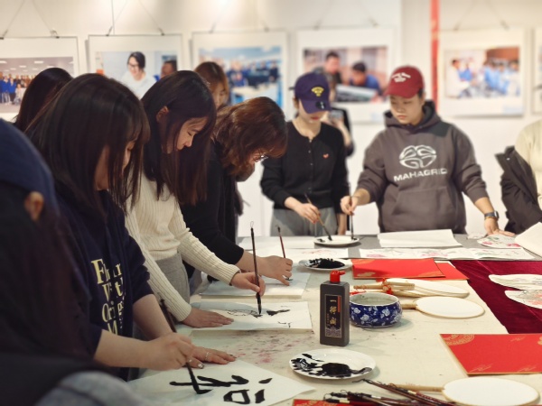 仪式后,双方开展了一场别开生面的中华传统文化体验活动。天外师生们在文化馆书法老师和美术老师的指导下,热情高涨地学习了写福字和画团扇。韩国的大学生们沉浸其中,他们通过亲身体验,深刻感受到了中华传统文化的博大精深,对中国文化有了更加直观和深入的认识。