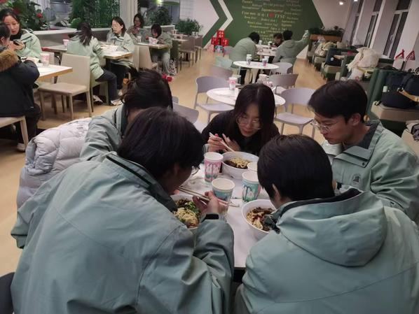新疆支教团返津,食堂为凌晨返津的支教队员们准备了热腾腾的欢迎面;喜迎新年之际,食堂举办中外师生庆新年包饺子活动,新年启新程,再续新篇章;腊八岁寒,食堂免费赠送腊八粥,愿师生们在天外的日子如腊八粥般香甜;秋季学期末,食堂设置电子屏祝福语,给学生舒缓压力、加油打气,为学生站好最后一班岗。