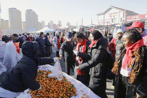 来自20多个国家的近40名天外留学生在宁河体验“赶大集”。留学生们穿梭于各个摊位之间采购年货,欣赏民俗节目,感受中国年的独特魅力和文化氛围。全国武术冠军王菊现场教授留学生们武术礼仪和动作,传承中华优秀传统文化。