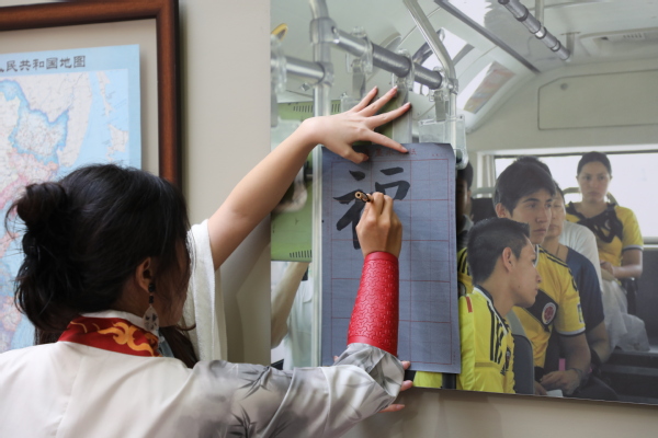 当日,孔子学院教室变身书法课堂。孔子学院教师深入浅出地讲解汉字的演变和书写技巧,手把手教学生们书写“福”和“家”两个饱含新春祝福的汉字。学生们全神贯注,一笔一划认真临摹,感受着汉字书法艺术的独特魅力。