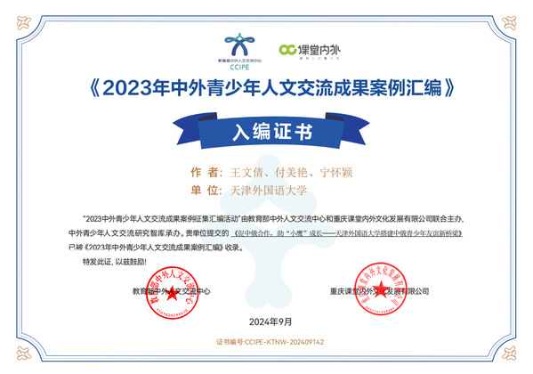近日,由教育部中外人文交流中心指导,中外青少年人文交流研究智库主编的《2023年中外青少年人文交流成果案例汇编》正式出版发行。经专家审核,全国共有174个单位的220个案例入编《2023年中外青少年人文交流成果案例汇编》。我校欧洲语言文化学院报送的智库成果《促中俄合作,助“小鹰”成长——乐玩在线(中国)唯一官方网站搭建中俄青少年友谊新桥梁》入选。