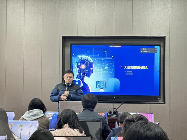 讲座系统梳理大语言模型发展脉络,从Transformer架构革命到DeepSeek推理模型的自我迭代机制,剖析大语言模型如何重塑翻译工作流,揭示AI技术如何通过监督微调(SFT)、检索增强生成(RAG)等技术提升翻译精准度。同时,毛隽聚焦应用实践,分享了实训翻译场景,演示了DeepSeek在术语提取、文化意象处理及政治表述翻译中的精准表现。最后,毛隽博士带领大家展望行业未来,鼓励师生立足“技术能力+人文素养”视野把握发展机遇,提出“会思考的AI助手+跨领域人才”的人机协作模式,呼吁培养兼具技术敏感与人文温度的智能语言工程师。