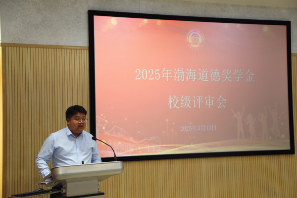 为进一步弘扬中华民族传统美德,塑造学生良好品行, 营造崇德向善、乐学尚能的优良校风和学风,近日,我校在逸夫楼大江厅召开2025年渤海道德奖学金校级评审会。天津渤海善行帮扶服务中心主任岳子胜、天津渤海供应链管理有限公司办公室副主任薛秀建,校关工委委员李兰,党委学生工作部、研究生院、教务处、招生就业处、校团委等相关部门负责人担任评委。