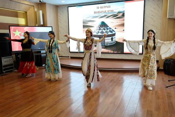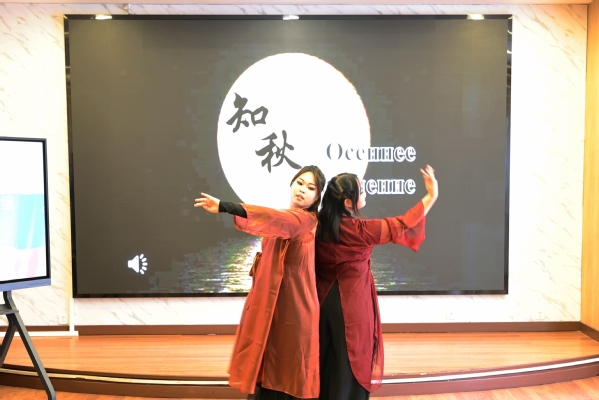 仪式文艺表演环节以“多元文明·美美与共”为主线,中俄青少年联袂呈现了精彩纷呈的节目:歌曲《贝加尔湖畔》以中俄双语吟唱,空灵旋律勾勒出两国山水相连的壮美画卷; 舞蹈《知秋》以中国古典舞诠释“一叶知秋”的东方哲学,与哈萨克民族舞蹈《新娘出嫁》的奔放热情形成鲜明对话;俄语歌曲串烧《小行迹+彩虹下面》由天外学生弹奏演唱,展现了当代青年的文化创造力;“小鹰”们带来的《哥萨克舞》则以铿锵舞步点燃全场,将俄罗斯民族文化的豪迈与活力展现得淋漓尽致。