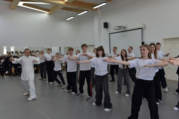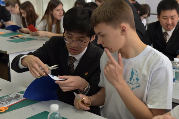 俄罗斯青少年沉浸式体验了中国传统文化。在太极拳课堂上,专业教师以“阴阳辩证”的哲学理念为切入点,带领中俄学生共同练习传统太极二十四式简化太极拳的动作。“小鹰”营员们认真模仿一招一式,体会中国传统文化中“以柔克刚”的智慧,现场欢声笑语不断。随后的剪纸体验更是激发了俄罗斯青少年的创作热情。在“小外”师生的指导下,他们用红纸和剪刀制作出“福”“寿”字、窗花等传统纹样,并将自己的作品塑封留作纪念。