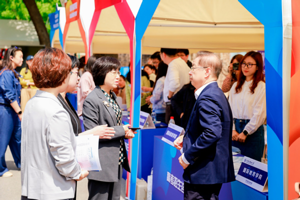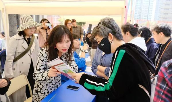 现场特设的天外本科生、研究生各学院招生宣传展位和留学生招生宣传展位前人头攒动,不少市民前来咨询交流。