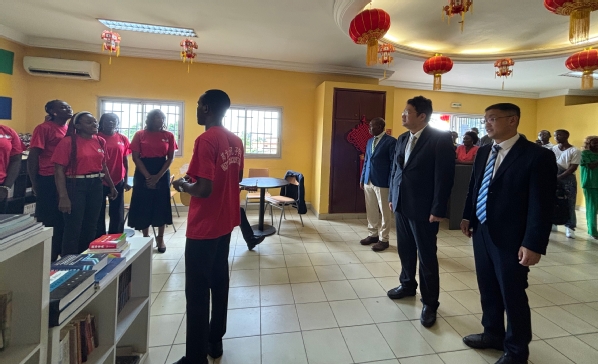 近日,中国驻加蓬大使周平与邦戈大学校长埃科米走访邦戈大学孔子学院,双方就深化中加教育合作达成多项共识。邦戈大学副校长、国际合作处处长、孔子学院中加方院长全程陪同。