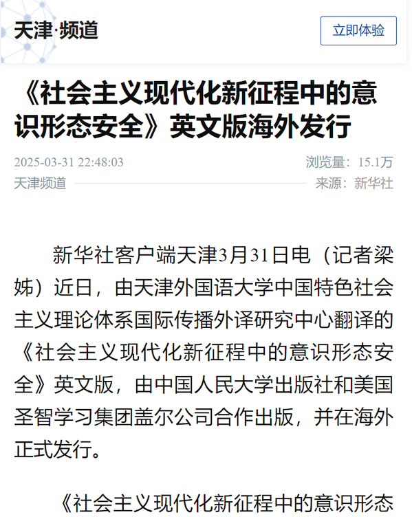 学校始终秉持“中外求索 德业竞进”的校训,以服务国家国际传播战略为核心使命,依托中国特色社会主义理论体系国际传播外译研究中心,为中国式现代化话语体系的国际传播贡献力量。中心成立三年来,充分发挥外语学科在融通中外文化、促进文明交流互鉴中的独特优势,努力传播中国声音、阐释中国理论、弘扬中国思想。此次《社会主义现代化新征程中的意识形态安全》英文版的成功发行,是我校在推动中国特色社会主义理论国际传播方面的又一重要成果,为提升国家文化软实力和国际话语权作出了积极贡献。