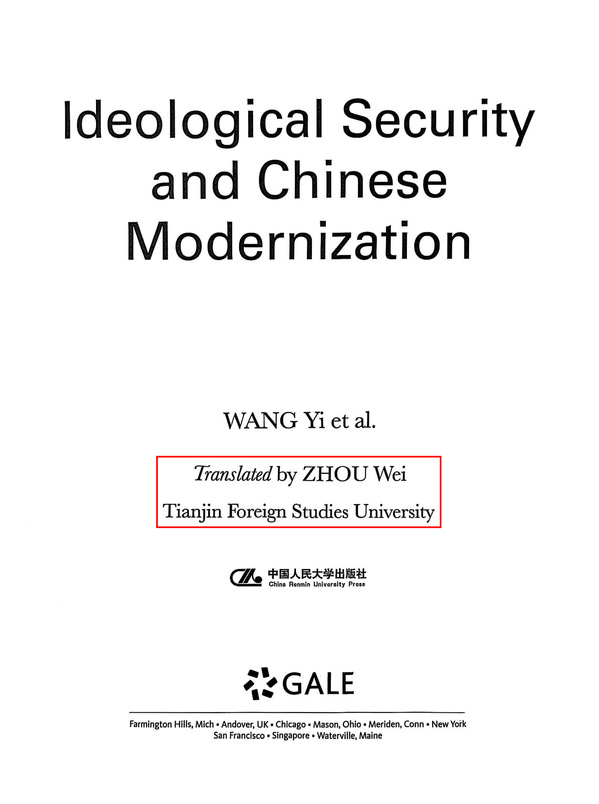 The English edition of Ideological Security and Chinese Modernization, translated by Prof. Zhou Wei from Tianjin Foreign Studies University (TFSU), has been co-published by China Renmin University Press and Gale, Cengage Learning, and is now available overseas.