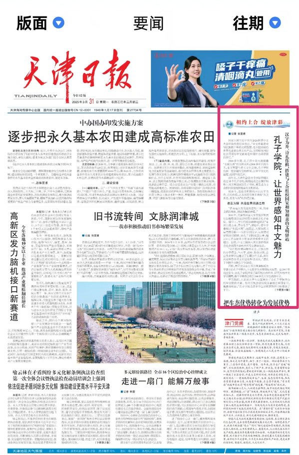 近年来,天津在全球22个国家和地区设立35个孔子学院,特别是设立在俄罗斯和土耳其等国家的孔子学院,更是成为上合组织国家相知相亲的文明驿站。