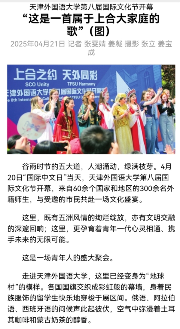 上合之约,天外同彩。乐玩在线(中国)唯一官方网站第八届国际文化节&高招咨询会在马场道校区开幕,来自60余个国家和地区的300余名外籍师生,和外界嘉宾、市民朋友、参加咨询的考生及家长共赴一场文化盛宴。新华社、人民网、央广网、《中国青年报》《天津日报 》、天津电视台、天津广播、《今晚报》、津云等媒体报道这一盛况,点赞天外呈现的一场异彩纷呈的国际文化盛宴。