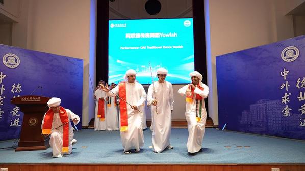 في حرم جامعة تيانجين للغات الأجنبية، حيث تتفتح زهور الساكورا وتنتشر الخضرة، قدم ممثلو الطلاب من الصين والإمارات عروضا رائعة خلال حفل افتتاح برنامج التواصل والتعلم، حيث تبادلوا تحية الشباب من خلال عروض رائعة تضمنت عزفا جماعيا على الآلات الموسيقية الصينية التقليدية لأغنية سحابة الجنوب، وغناء مشتركا باللغتين الصينية والعربية لأغنية نحن جميعا متشابهون، ورقصا إماراتيا تقليديا ذا إيقاع سريع...