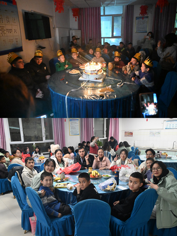 支教生活即将画上句号,刘雨桐和同伴们悄悄备好礼物,打算给住在福利院的学生们一个惊喜。那天清晨,十多个穿着校服的小身影早已守在大门前,刚一见面便迫不及待地奔向这群与他们朝夕相处的“天津老师”。那一天,也是孩子们十二月的集体生日会,支教团与孩子们一同吹灭蜡烛、分享蛋糕的甜蜜。那份纯真的快乐,仿佛融化了时间的边界。临别时微红的眼眶,久久不愿松开的手臂,让晚霞中的告别变得格外绵长。“这场不期而遇的邂逅,让我触摸到幸福最本真的模样——在中华民族大家庭里,每个孩子的童年都理应如此向阳生长。”