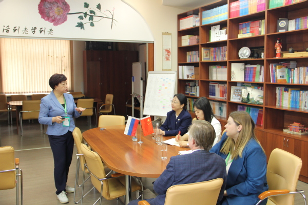 值此孔子学院成立十五周年之际,我国驻俄使馆派代表团专程到访孔子学院。在办公室,孔子学院中方院长宁怀颖详细介绍了学院的发展历程,工作情况及取得的丰硕成果。宁怀颖表示:“未来,我们将继续以语言为媒,以文化为纽带,推动中俄友好合作再上新台阶。”