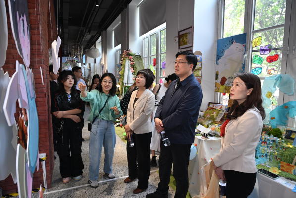 开幕式后,与会嘉宾一同参观2025年国际传媒学院毕业设计作品展。校地双方领导围绕深化科研合作、文创产品开发、志愿服务联动等议题展开深入交流,达成建立文化教育资源共享机制等多项共识。