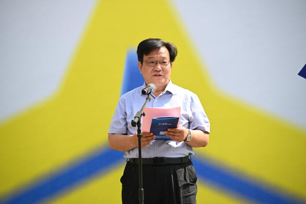 周红蕾对作品展的顺利开幕表示热烈祝贺。她指出,今年是教育强国建设全面布局、高位推进之年,也是教育强市建设全面提质增效之年。在上合组织峰会即将在津召开的重要时刻,校地联合举办此次展览是服务地方经济社会发展的积极实践,也是落实文化传承发展的重要举措。她回顾了学校与河北区在教育资源共享、文化传承创新等领域的深度合作,强调此次展览以艺术为媒展示了天津开放包容的城市精神和河北区日新月异的发展变化,凸显了天外师生的文化底蕴和创新思维,也搭建起校企合作与产业转化的新桥梁。未来,学校将继续发挥多语种、多学科、国际化的优势,联合打造外语教育国际化高地,大力推进产教融合,积极对接河北所需,携手开创校地合作新典范,为谱写中国式现代化天津篇章贡献力量。