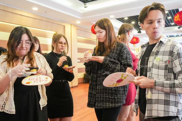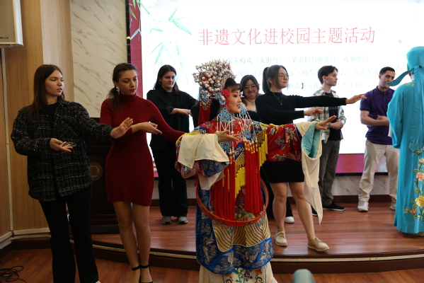 活动现场气氛热烈,来自俄罗斯的留学生斯维塔表示,“这是我第一次尝试制作中国传统点心,感觉非常有趣。通过这次活动,我不仅学到了制作技巧,还了解到了中国美食文化的深厚底蕴。”此外,活动现场还设置了戏曲教学环节,留学生们与戏曲演员进行面对面交流,学习戏曲表演技巧,为此次活动增添了浓厚的文化氛围。