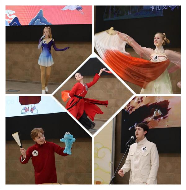 在这次精彩纷呈的比赛中,选手们围绕主题演讲、中华才艺展示、即兴演讲以及中国文化知识竞赛展开。每位参赛者都展现出扎实的中文功底与深厚的文化积累,充分体现了俄罗斯青少年对中华文化的理解与热爱。在主题演讲环节,选手们结合自身经历,围绕“天下一家”“追梦中文,不负韶华”等主题展开阐述,语言真挚、观点新颖,充分展示了他们对中华文化的热爱与思考。中华才艺展示更是异彩纷呈,歌舞、朗诵、快板、相声、国画、乐器演奏等形式多样,内容丰富。中学生组别中还出现了皮影戏等传统艺术形式,令人耳目一新。而AI技术的融入,也为比赛增添了现代感与科技感,使传统文化焕发新的生命力。