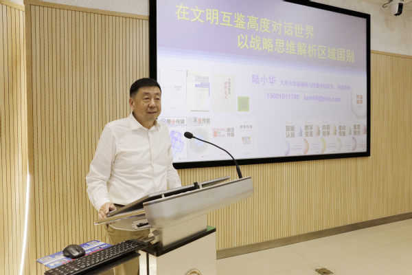 在发布会后的讲座中,陆小华围绕“文明互鉴”与“战略思维”两大核心议题展开论述。他指出,不同文明之间的对话与合作是推动人类社会发展的关键,应跳出单一学科研究的框架,从共生互鉴的角度理解国际关系的复杂性。他结合“一带一路”倡议、数字经济合作等案例,强调区域国别研究不仅是文化议题,更关乎国际战略。