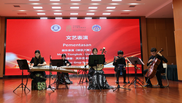 仪式现场,天外艺术团、印尼语专业学生表演的节目,展现了两国文化的交融共生,让现场嘉宾沉浸在中印尼文化交融的美好氛围中。