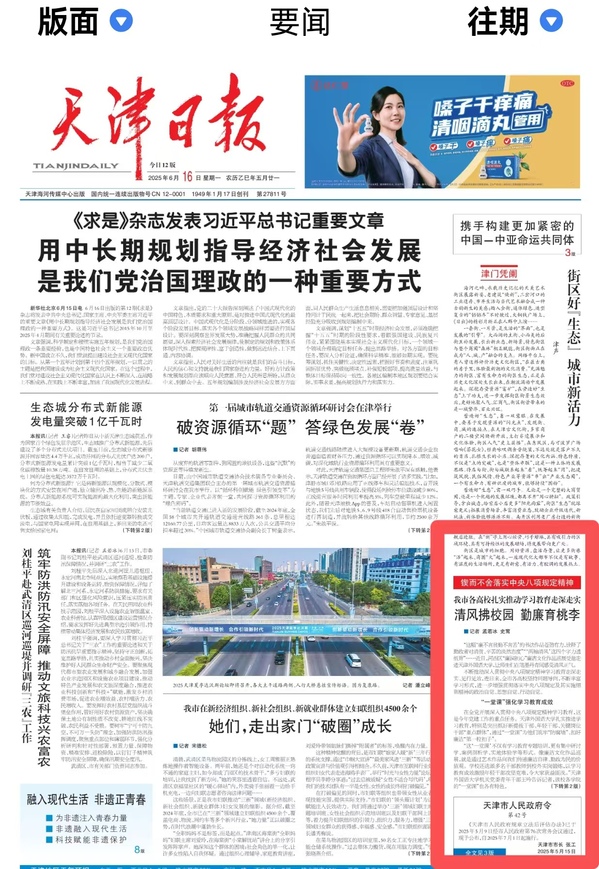 新闻来源:https://digitalnewspaper.tjyun.com/newspaper/v7.5/tjrbDetail.html?resultId=852675_691da8b55434f6bebc6f719d3a1103685d2b31384cd70df51f0e16b74cf7250b&layout=0&date=20250616