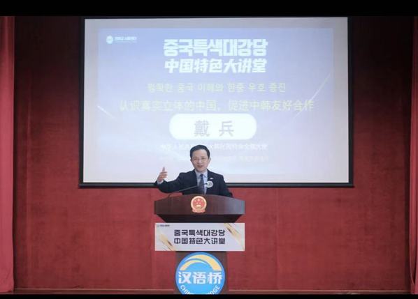 在演讲中,戴兵大使提到,近日中韩两国元首进行了通话,双方强调要加强各领域的交流合作,这一互动释放出促进两国关系发展的重要信号。自中韩建交30多年来,中国在经济、教育和科技领域取得了显著成就。加强中韩互利合作,既符合两国根本利益,也是两国人民的共同心愿。中韩双方应继续弘扬友好互助的邻里情谊,深化经贸领域的务实合作,夯实人文交流的民意基础,携手推动中韩战略合作伙伴关系迈向更高水平。戴兵大使还高度评价了包括孔子学院在内的教育机构在促进两国教育合作和增进民心相通方面所发挥的重要作用。