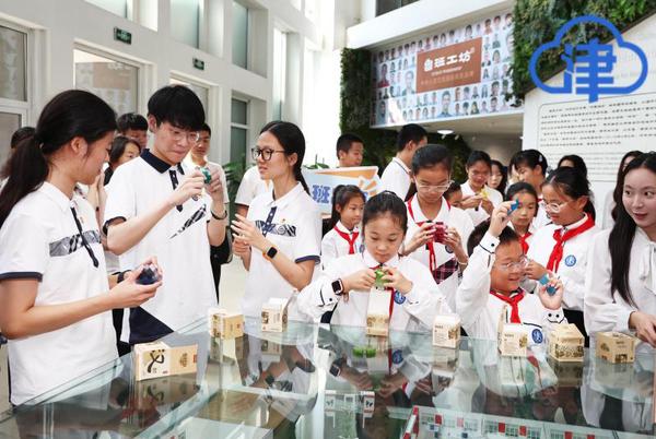 “同学们,鲁班工坊是天津职业教育原创首创的国际化品牌项目,为合作国培养经济社会发展急需的高素质技术技能人才。大家一起数数,地图上有多少个鲁班工坊坐落在上合组织国家?”7月9日上午,在一张巨大的世界鲁班工坊建设版图前,外语学校大中小学生们正在聆听一堂沉浸式、互动式的“大思政课”。